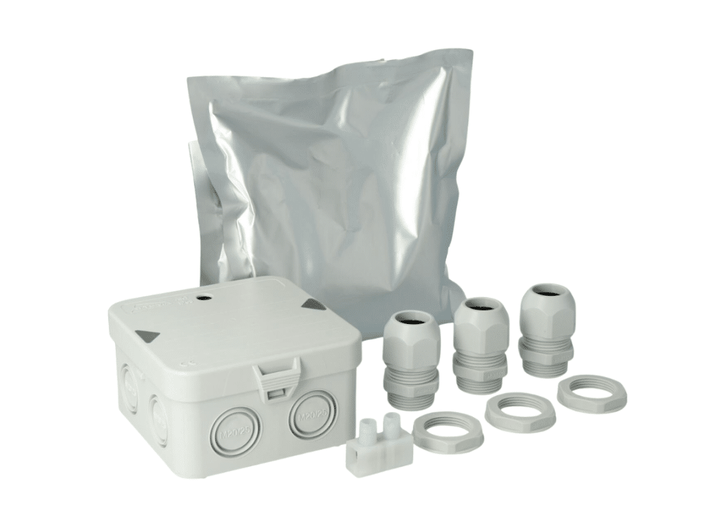 - Verbindingsmateriaal: Wago klemmen, kabelverbindingsmoffen, gietmoffen.